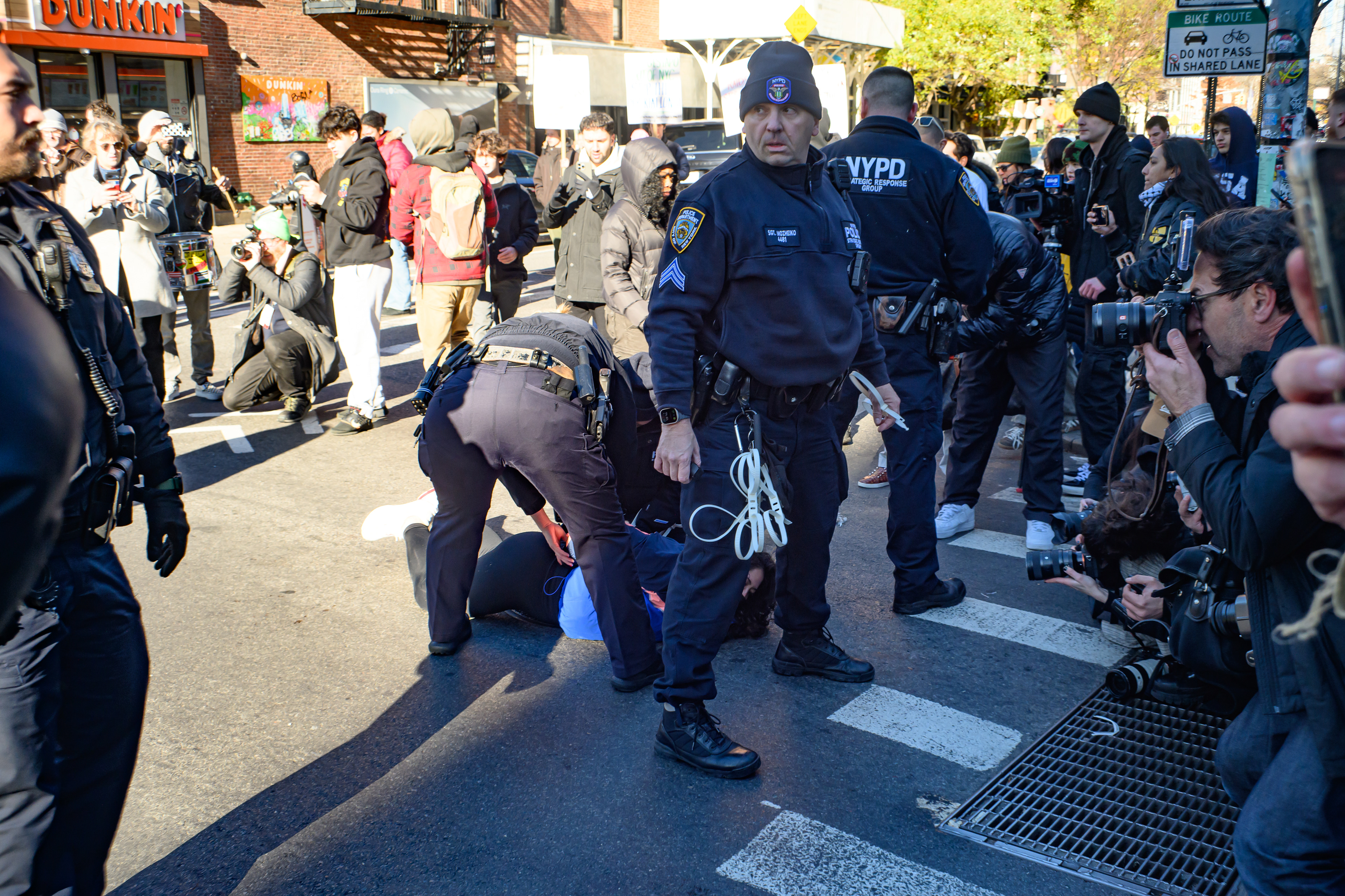 police make an arrest as protesters attempt to disrupt an ice raid on canal st.